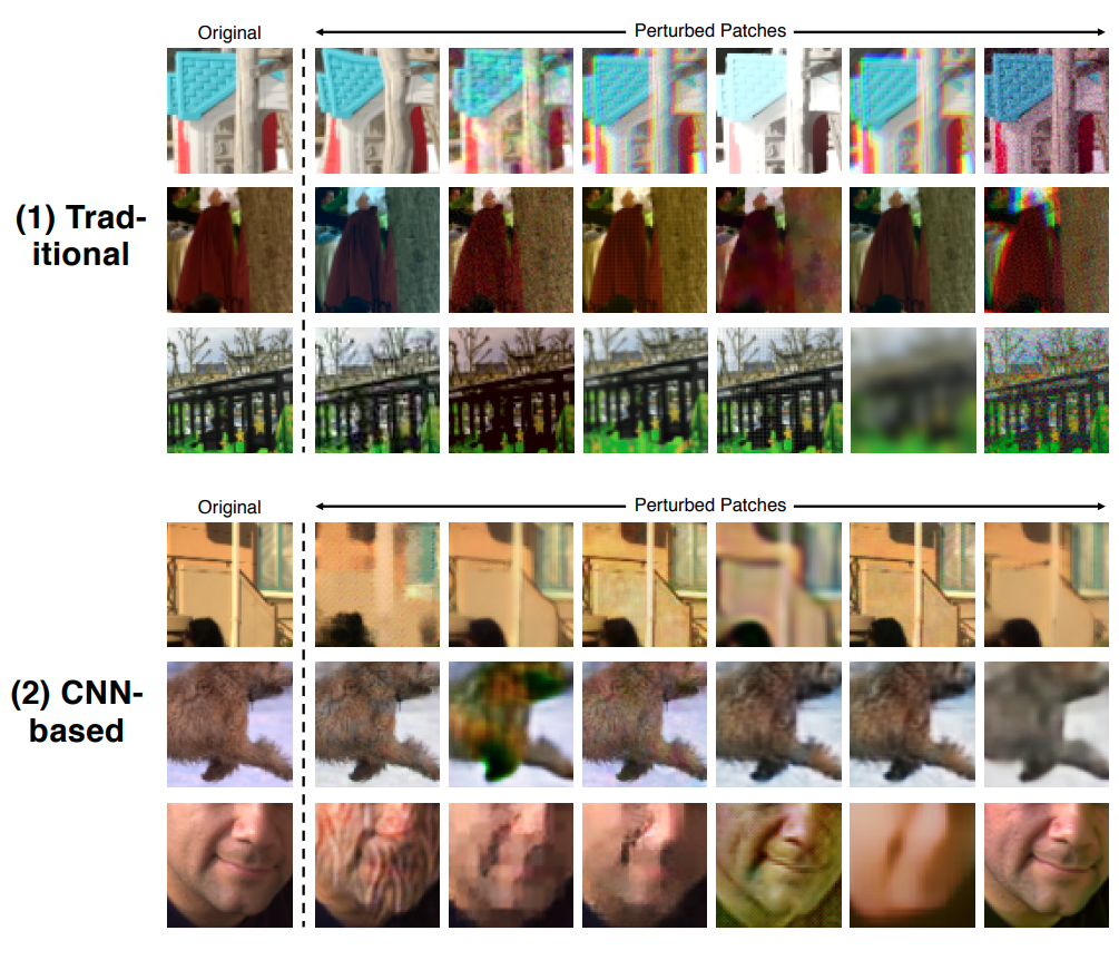 (1)Traditional distortions noise, photometric, blur, warps, compression