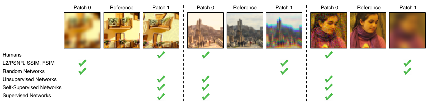 - Deep features across training objectives outperform widely-used perceptual metrics (e.g., SSIM)